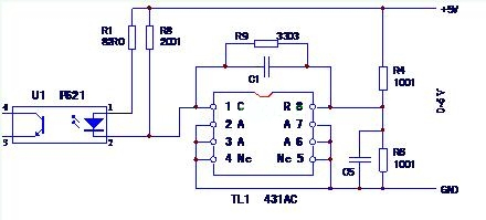 光耦合器U1的输入侧电路,如图3所示。这是一个输出电压采样与处理电路,从整个电压反馈处理电路来看,U1输入侧与输出侧(即振荡芯片U2的1、2脚内、外部电路)构成了一个电压反馈放大器电路。若以线性稳压的眼光来看,输出+5V高低的变化,导致了U1输入侧光电流的变化,引起输出侧3、4脚导通电阻的变化。但这种看法是错误的,若分析电压基准源431内部电路(见图4),U1的输入侧电路只能工作开关模式,而无法进入线性区域。