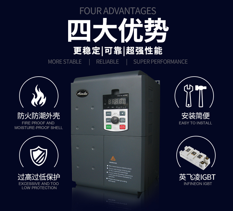公司具有业内领先的自主核心技术和可持续研发能力,提供通用变频器、电流矢量变频器、磁通矢量变频器、风机专用变频器、水泵专用变频器、纺织专用变频器、空压机变频器、注塑机专用变频器等优质产品。